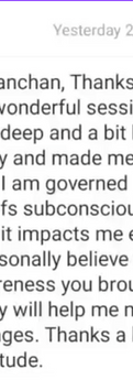 Kanchan has been an absolute delight to work with. I have managed to shift old patterns to brand new strategies that I can easily implement in my day to day life. Kanchan has been very passionate and dedicated to take me to the next level. I am very grateful. Thanks again.